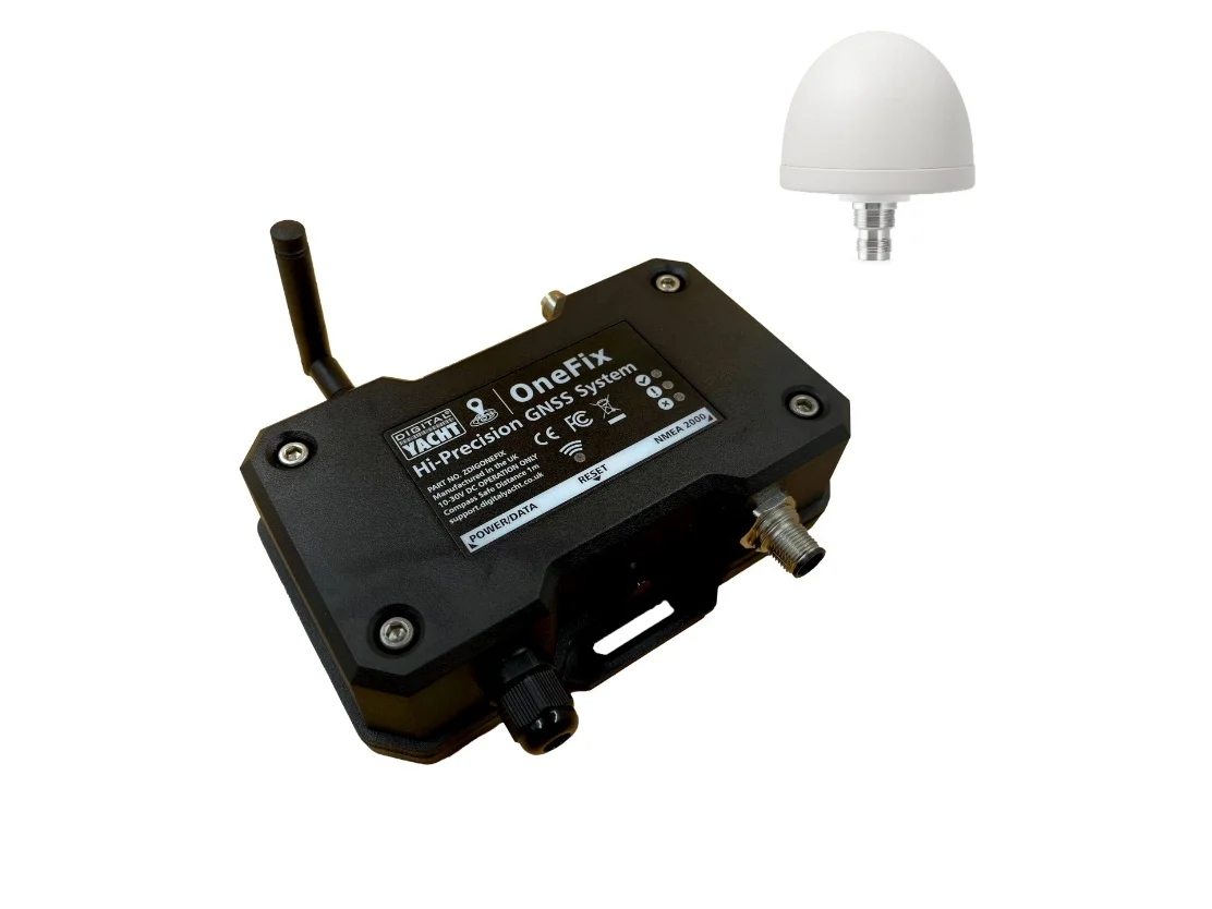 OneFix is Digital Yacht’s newly introduced hi-performance GNSS (global navigation satellite system) sensor. Using multiple satellite networks and new dual band technology, it’s been designed to offer super-accurate positioning (typically better than 1m) and importantly has robust anti-spoofing algorithms built in for more reliable navigation. It can also fit to just about any navigation system (including legacy units) plus connect to iPads and tablets and the latest multi-function NMEA 2000 compatible displays. OneFix promises to bring highly accurate, more reliable navigation to any boater.