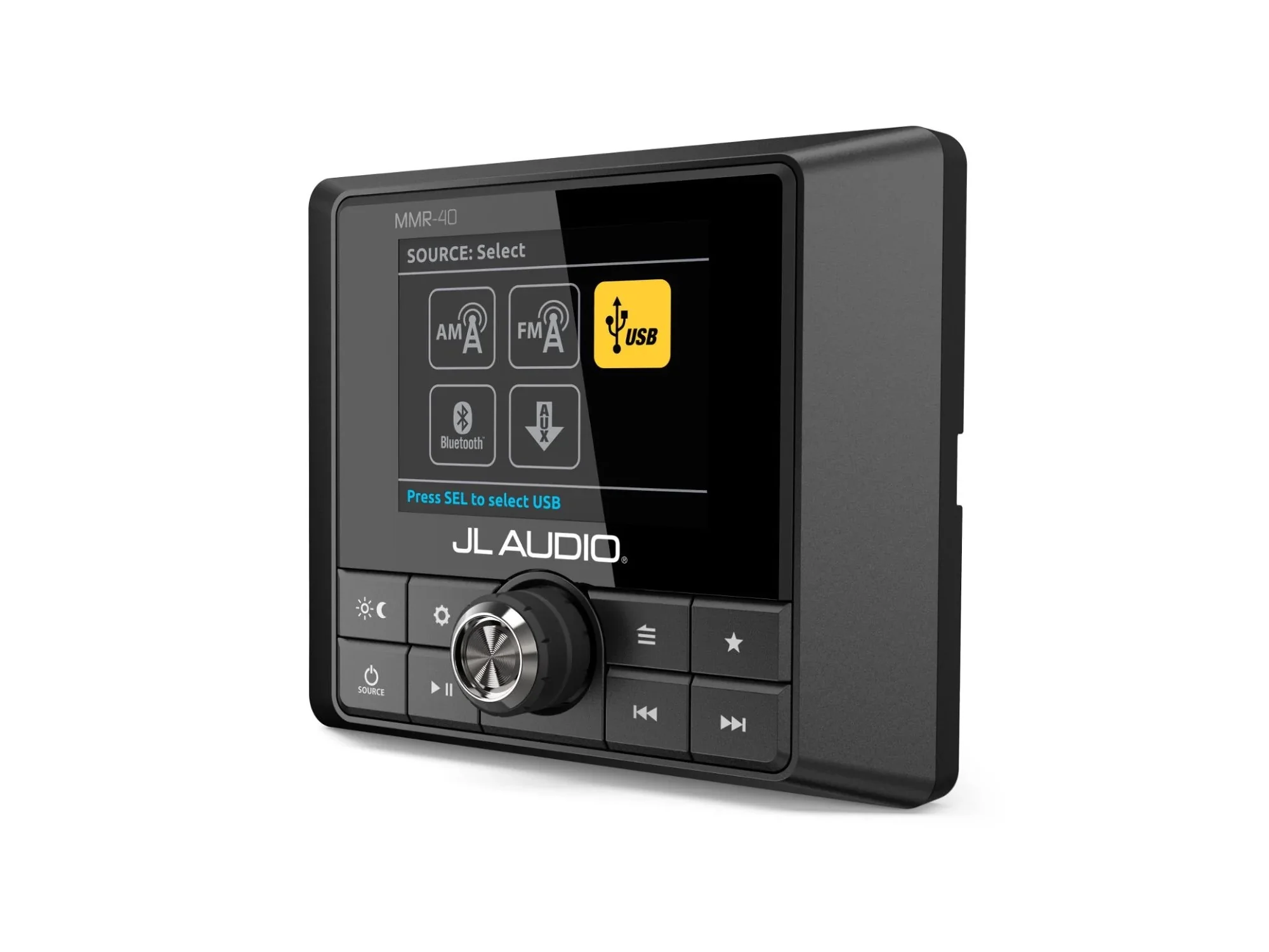 The MMR-40 is equipped with independent display theme and lighting controls for maximum mounting location flexibility, regardless of the settings on the host source unit. Engineered for real-world marine (and many outdoor) applications, its weatherproof (IP66 rated) chassis is built to withstand the harshest environments.